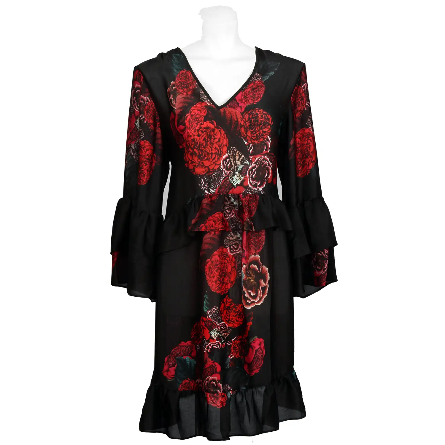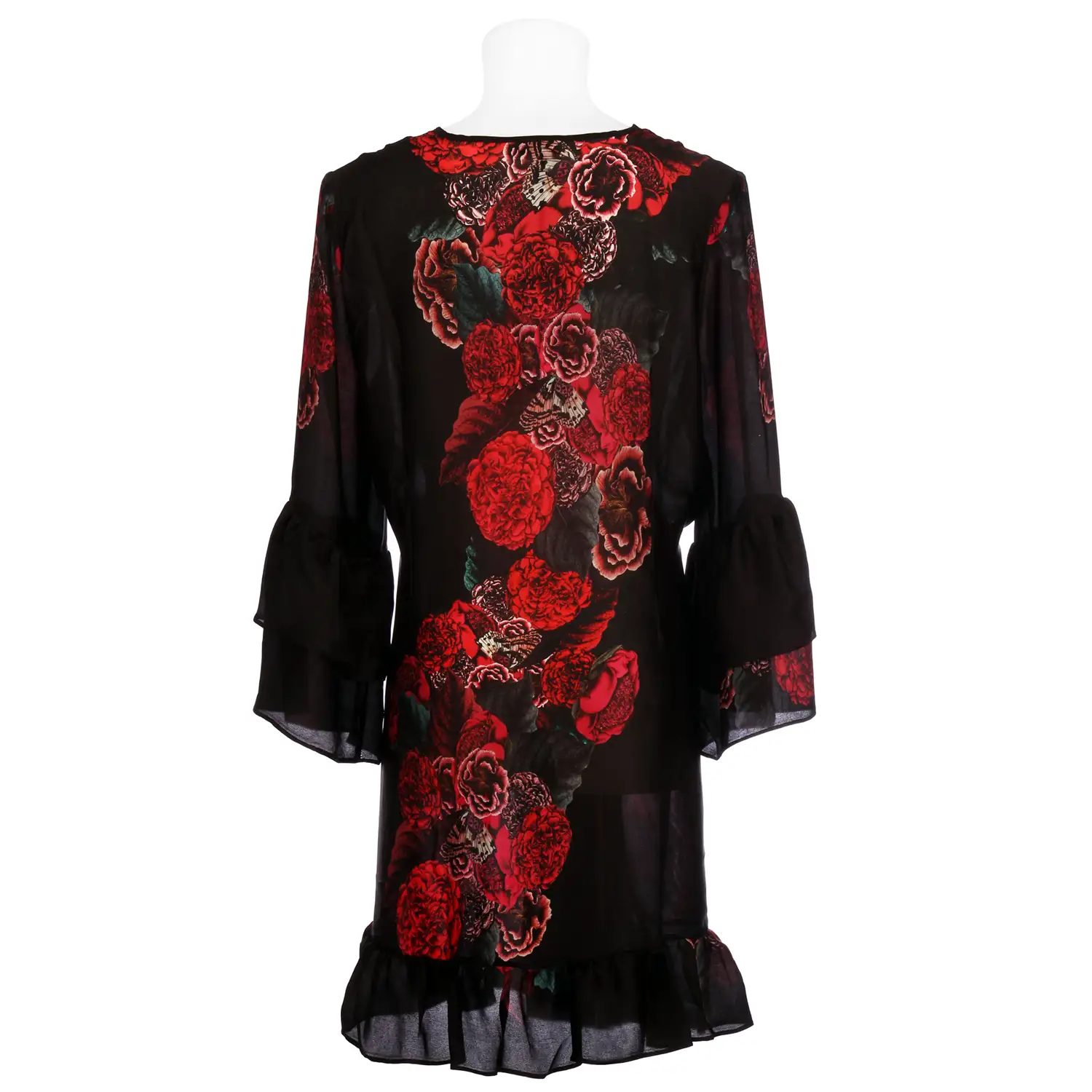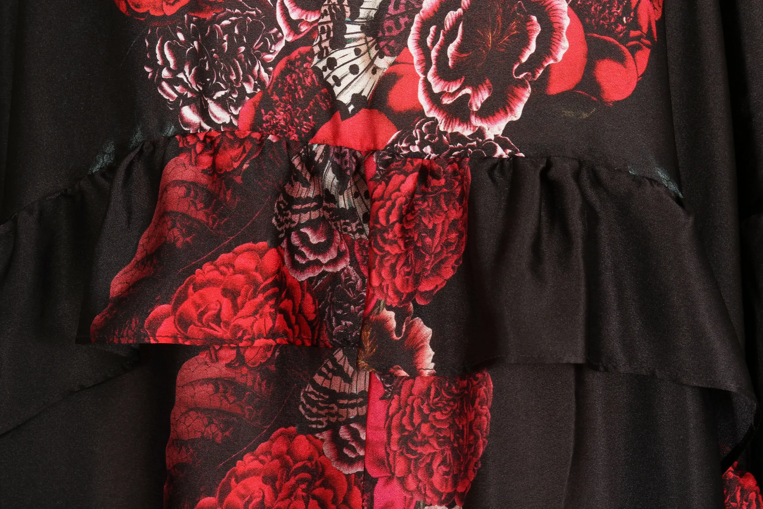 Scarlet silk print tunic with ruffles£275.00 Size Choose an optionLargeMediumClear Add to cart Description Description Scarlet silk print tunic with ruffles. Loose cut. Slimming and lengthening. Size M and L